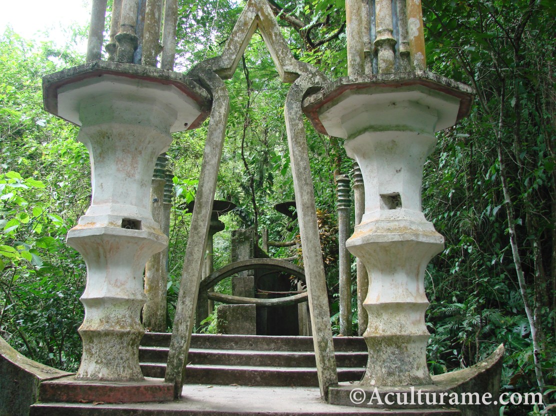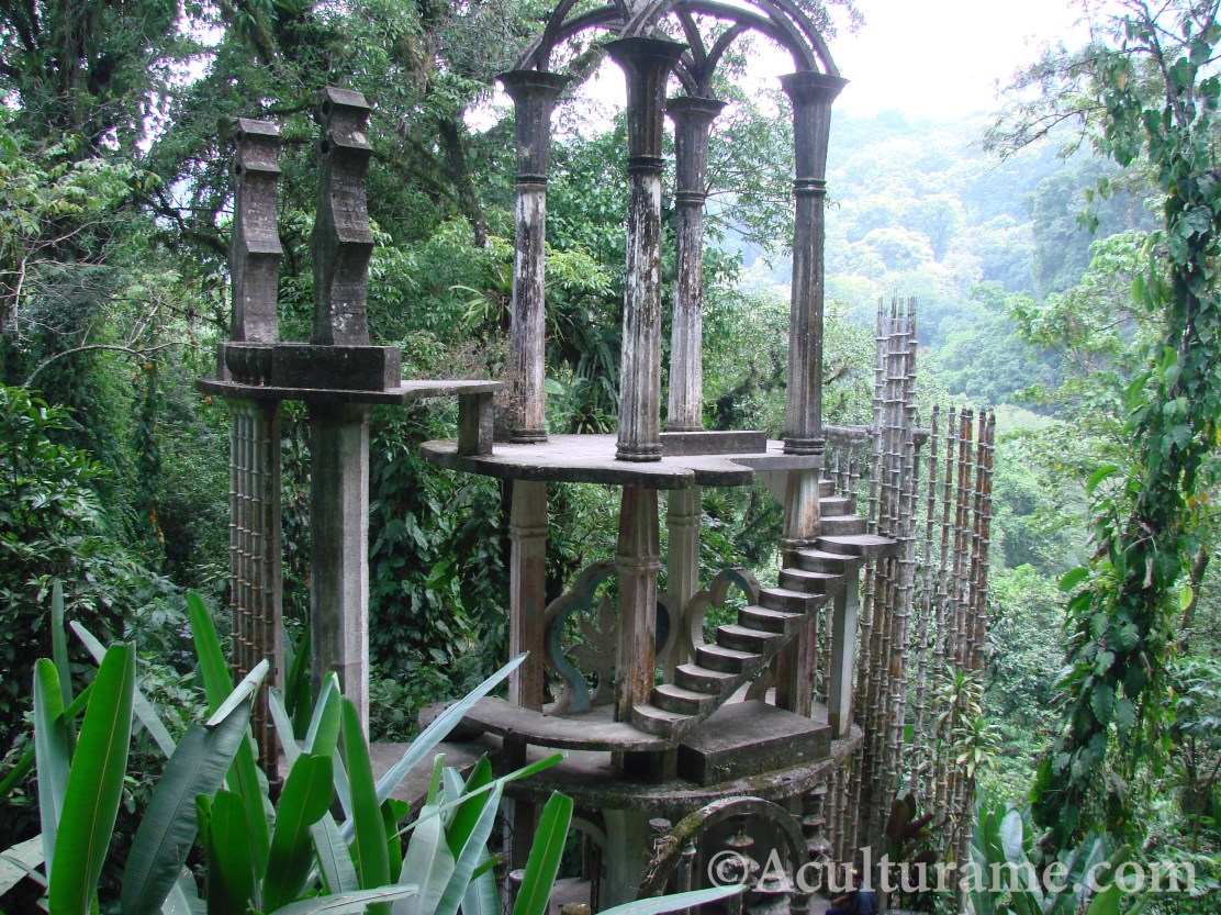 There are 36 surrealist inspired concrete sculptures in Las Pozas. Some visitors comment at the fact that the structures look like they are “hardly finished” and many people who are unfamiliar with Surrealism make the mistake of trying to make sense of Edward’s art using a rational or analytical mindset. The structures of Las Pozas are described as, “[concrete structures that]…provide shelter only for the individual and collective dreams of all visitors and residents who have taken refuge there –or those who’ve lost their way, given that (and this must be made very clear) none of these buildings is useful, at least not if one tries to understand them in a superficial sense. Rather, these are petrified dreams for all who pass by. There are doors that cannot be opened, stairways that lead nowhere, buttresses that push up against nothing, a library without books, a heterodox movie theater crowned by two gigantic columns, beams that sustain no weight but still traverse the flagstones in the most chaotic way imaginable, reclining like enormous serpents and holding only a single flowerpot on top (UNESCO).”