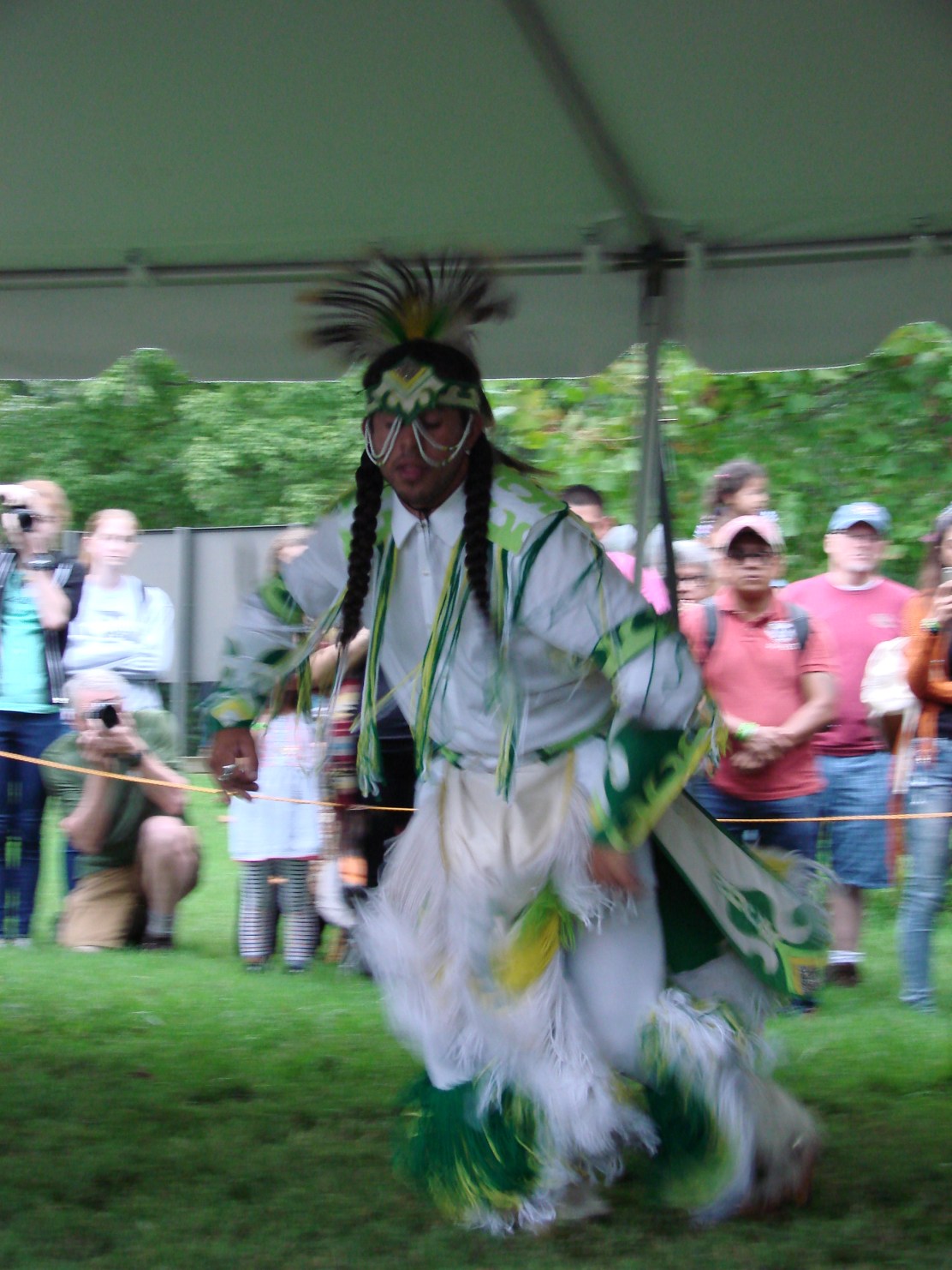 Next, I went and introduced myself to the team of Rappahannock dancers. During our conversations, I learned about their regalia (the distinctive clothing worn by Native American dancers and members of the tribe). I asked them questions about their tribe, their history, their culture and about how they learned to dance. While I chatted with the dancers I noticed that my daughter was very reluctant and timid. She is not comfortable approaching unknown people to ask questions. I told her it is important to educate yourself and asking questions and talking to people are good ways of doing just that.