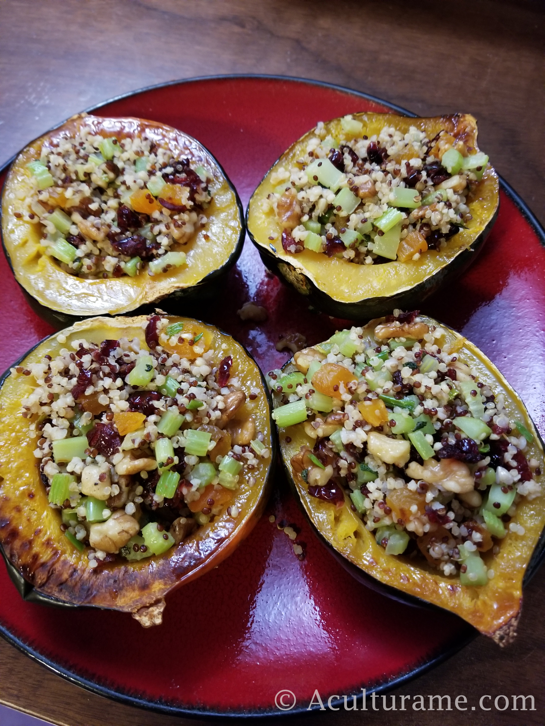 For my ‘New Decolonized Thanksgiving dinner’, I wanted to include familiar foods and foods that were new to my family and friends. I included turkey because turkey as we know it today, domesticated turkey, originated in Mexico with the Aztecs as well as in the Southwest in the U.S. For my side dishes, I wanted to include at least a new side dish that my family and I hadn’t tried before so the first year I created my new decolonized Thanksgiving dinner, I made “Squash Stuffed with Quinoa and Wild Rice.” This side dish was a success and my family loved it!